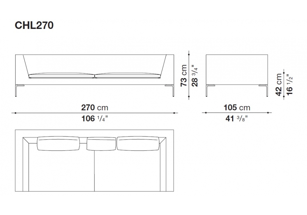 Charles Large diseñado por Antonio Citterio para B&B Italia es un sofá con estructura interna de acero tubular y perfiles de acero y acolchado de espuma de poliuretano flexible Bayfit® en frío, revestimiento interior de fibra de poliéster. Revestimiento en diferentes tejidos o pieles.