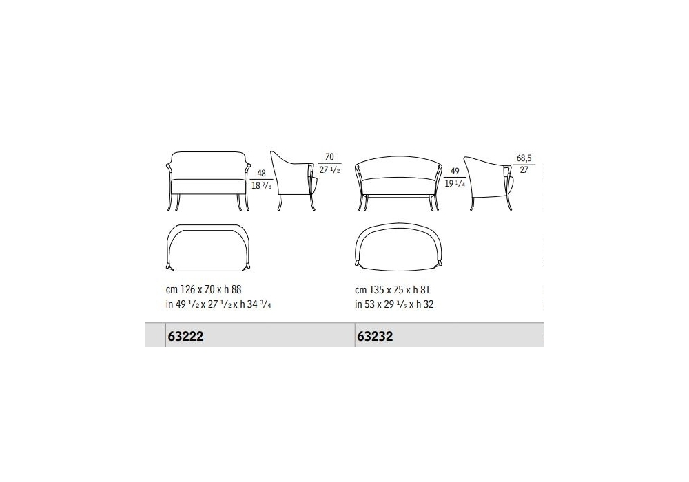Progetti diseñado y creado por el Centro Ricerche Giorgetti es un sofá de dos plazas con estructura de haya maciza con patas pulidas o lacadas. Los apoyabrazos son de pau ferro pulido. El acolchado del asiento y respaldo es de espuma de poliuretano, con tapizado disponible en tela o piel, en diferentes acabados. El sofá está disponible en diferentes tamaños.