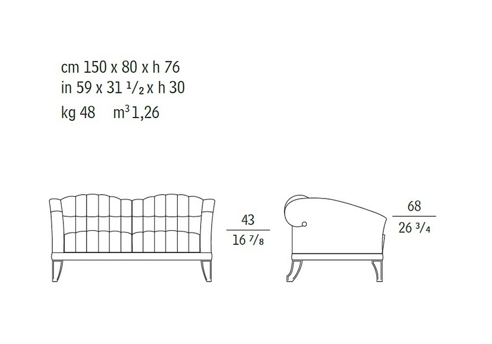 Ovis is a 2 seater sofa designed by Léon Krier for Giorgetti. Sofa with the frame in polished solid cherry wood. The structure is in solid beech wood and plywood. It has the fixed spring seat; the back and the arms are in non-deformable multi-density polyurethane, covered in fibre. The upholstery is available in fibre-quilted fabric or leather.