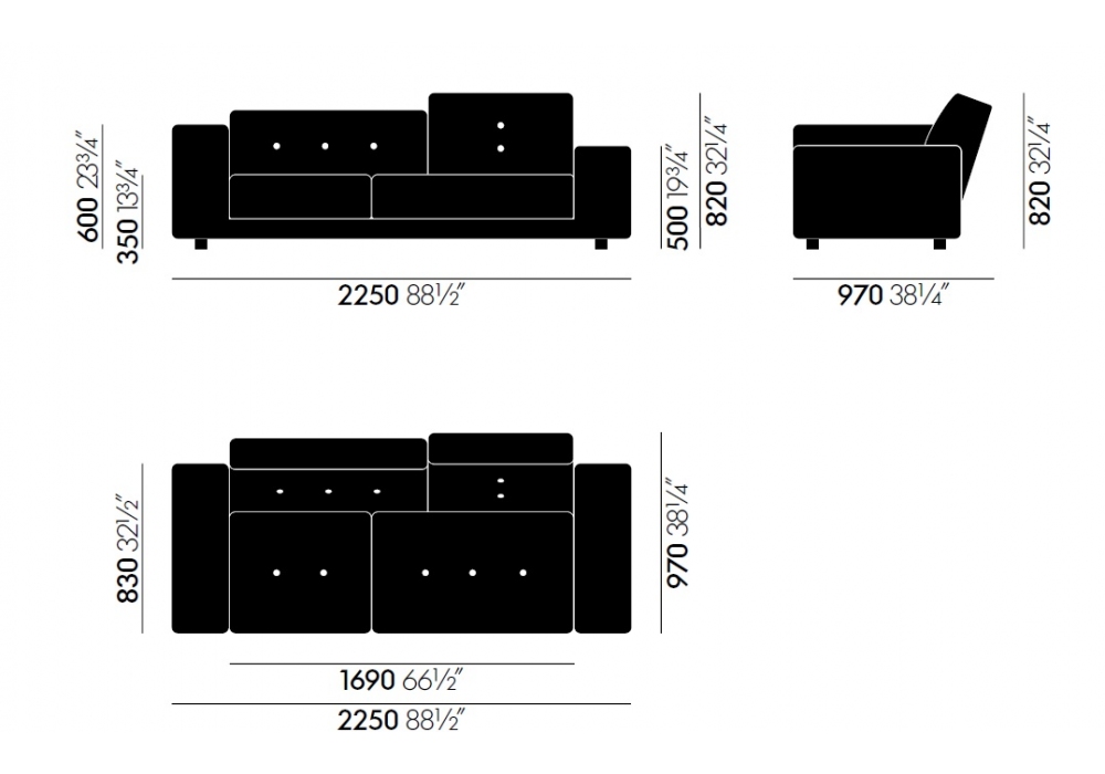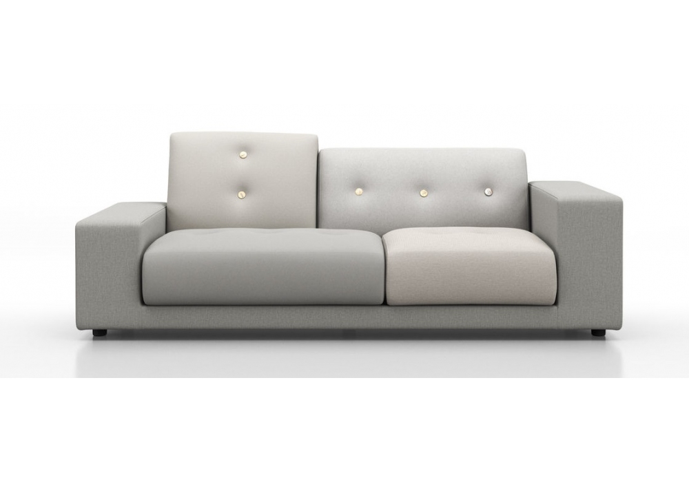 Polder Sofa es una colección de sofas diseñada por Hella Jongerius para Vitra. En la tierra natal de la diseñadora holandesa Hella Jongerius, la palabra «pólder» hace referencia a las tierras ganadas artifi cialmente al mar mediante diques y canales de drenaje. Con sus superficies planas y su diseño horizontal, este sofá bajo recuerda el paisaje de los pólders. Hella Jongerius eligió para él combinaciones de colores y tapicerías a juego realzadas con un hilo de alta tecnología y grandes botones de materiales naturales. El sofá Polder está disponible en varios tamaños y combinaciones de colores.