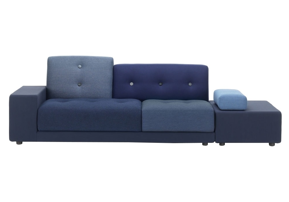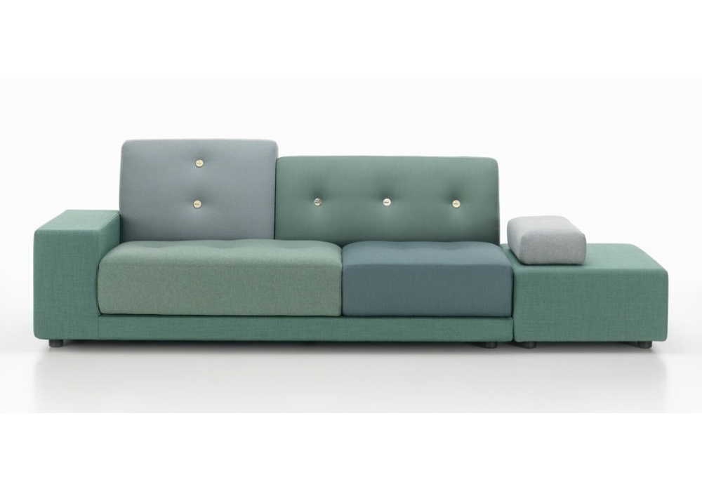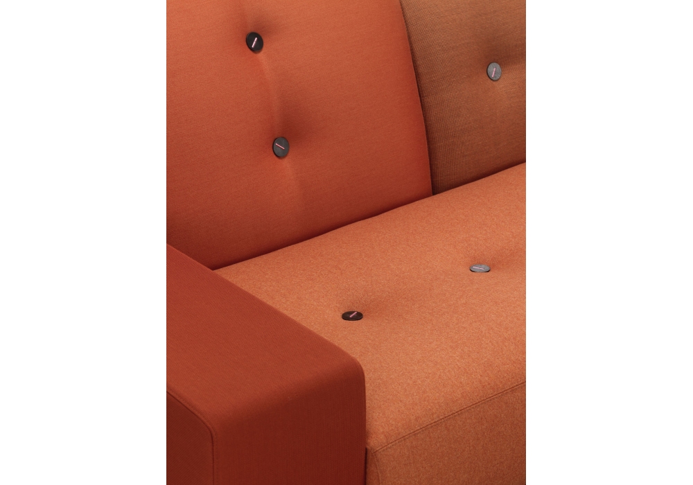 Polder Sofa es una colección de sofas diseñada por Hella Jongerius para Vitra. En la tierra natal de la diseñadora holandesa Hella Jongerius, la palabra «pólder» hace referencia a las tierras ganadas artifi cialmente al mar mediante diques y canales de drenaje. Con sus superficies planas y su diseño horizontal, este sofá bajo recuerda el paisaje de los pólders. Hella Jongerius eligió para él combinaciones de colores y tapicerías a juego realzadas con un hilo de alta tecnología y grandes botones de materiales naturales. El sofá Polder está disponible en varios tamaños y combinaciones de colores.