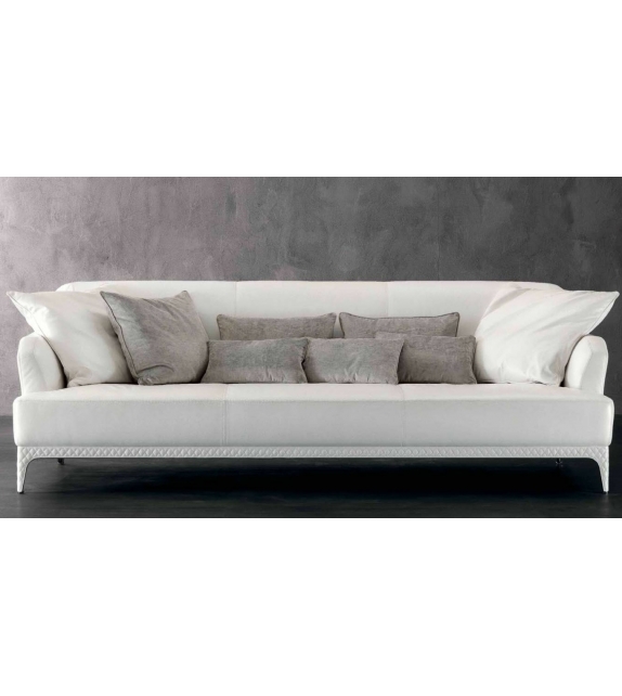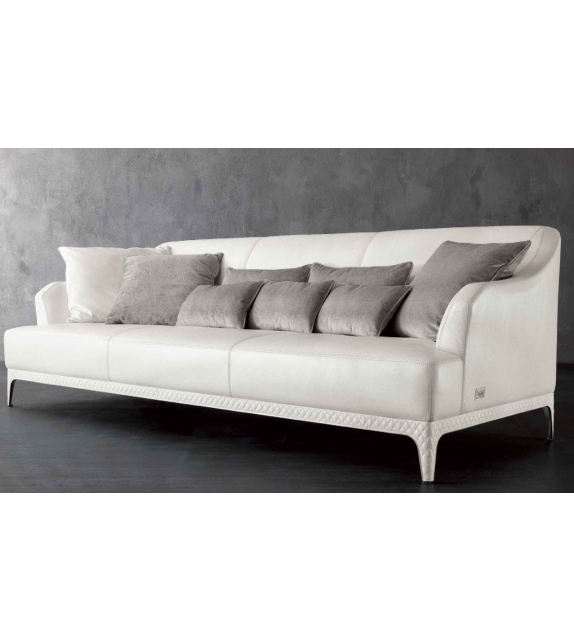 Oscar diseñado por Rugiano es un sofá disponible con tapizado en tela o piel. Detalles en acero o bronce. Matelassé o acabado liso en la base. Disponible en diferentes dimensiones.