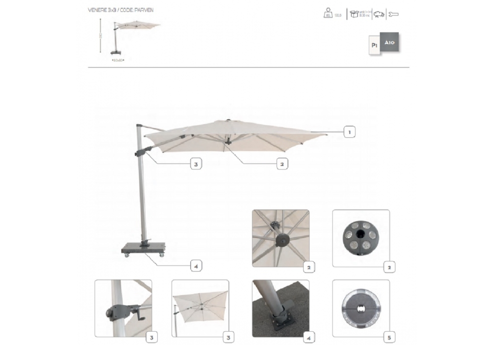 - El polo giratorio permite que el paraguas gire 360 °;