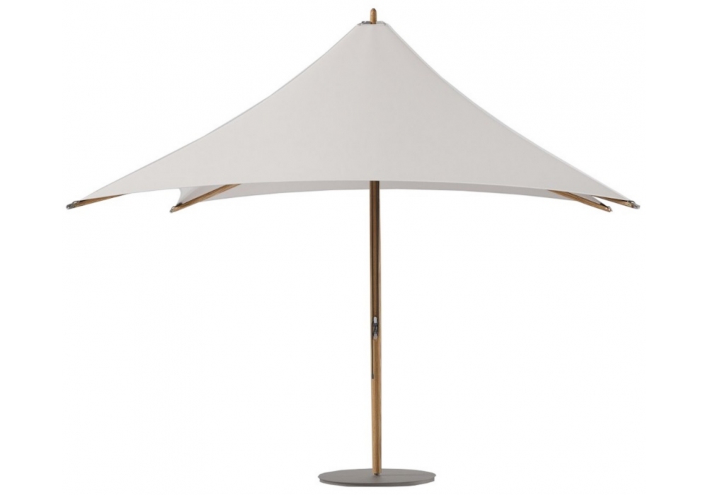 Paladin diseñada por Konstantin Grcic para Kettal es una sombrilla con estructura de madera de teca y parasol de tela apta para uso exterior. La base es circular de metal pintado de color corten. Paladin está disponible en diferentes acabados.