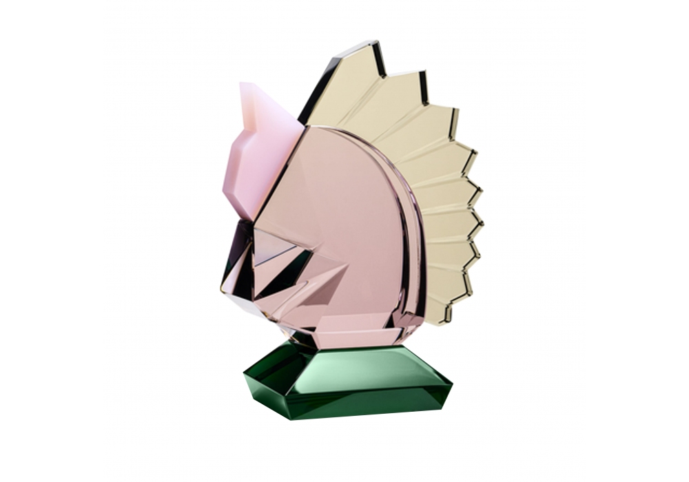 Horse diseñado y producido por Reflections Copenhagen es un sujetalibros con forma de equino completamente estructurado en cristal rosado, gris, rosa y verde.