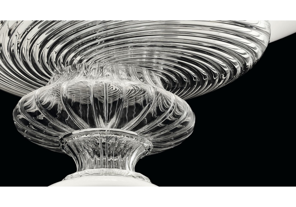 Pigalle diseñada y producida por Barovier & Toso es una lámpara de suspensión con estructura portante en metal cromado brillo, cromo negro o dorado cepillado. El cuerpo de la lámpara es de cristal veneciano y protege las fuentes de luz LED o halógenas regulables. Pigalle está disponible en diferentes acabados y medidas.