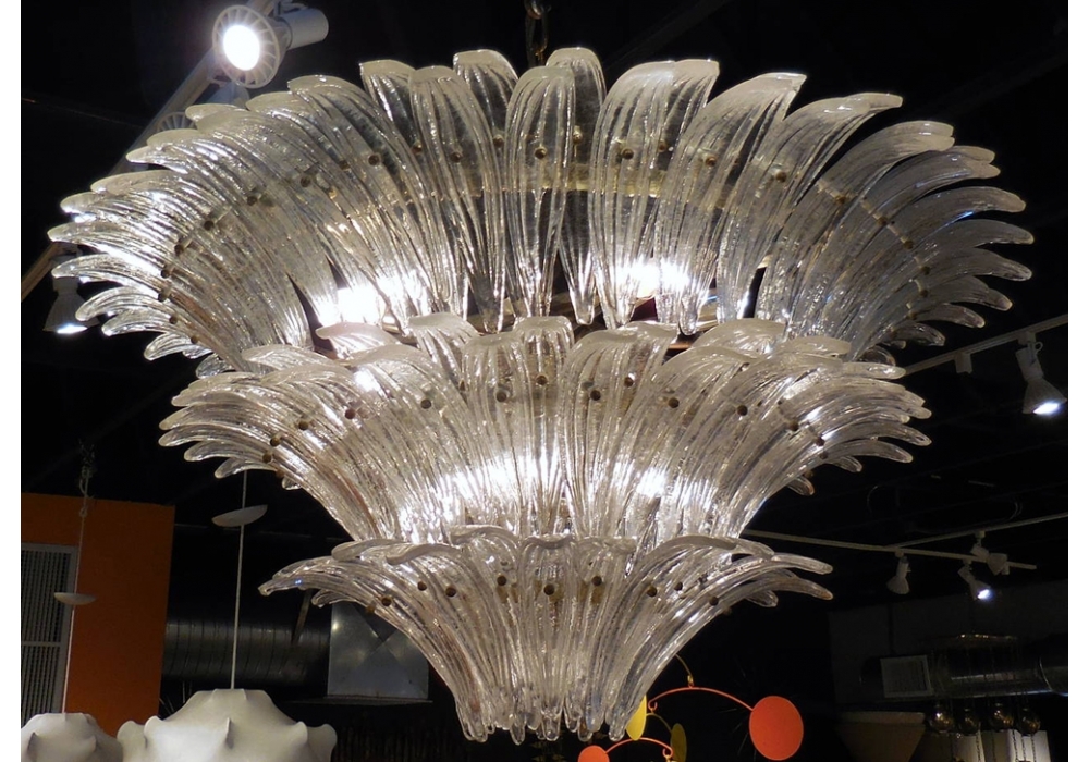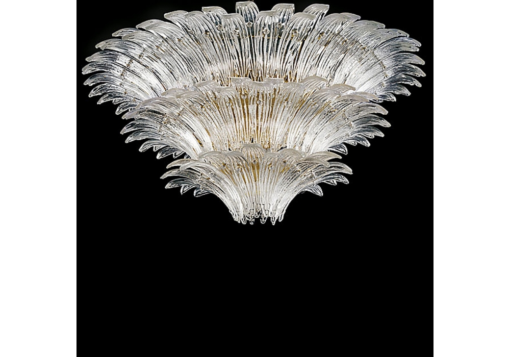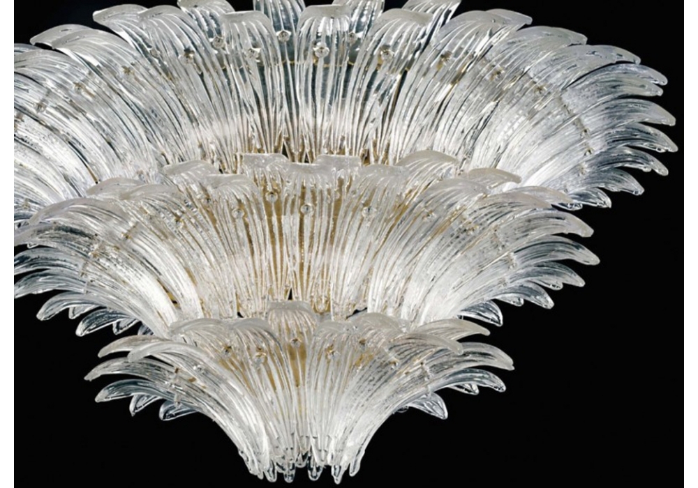 Palmette es una lámpara de suspensión diseñada por Barovier & Toso. La estructura de soporte está hecha de metal, adornada con varias aplicaciones circulares de vidrio veneciano en un solo acabado de cristal transparente. Las partes metálicas que enriquecen la estructura están en dos acabados en oro galvanizado o cromo pulido. Palmette está disponible en diferentes versiones y tamaños.