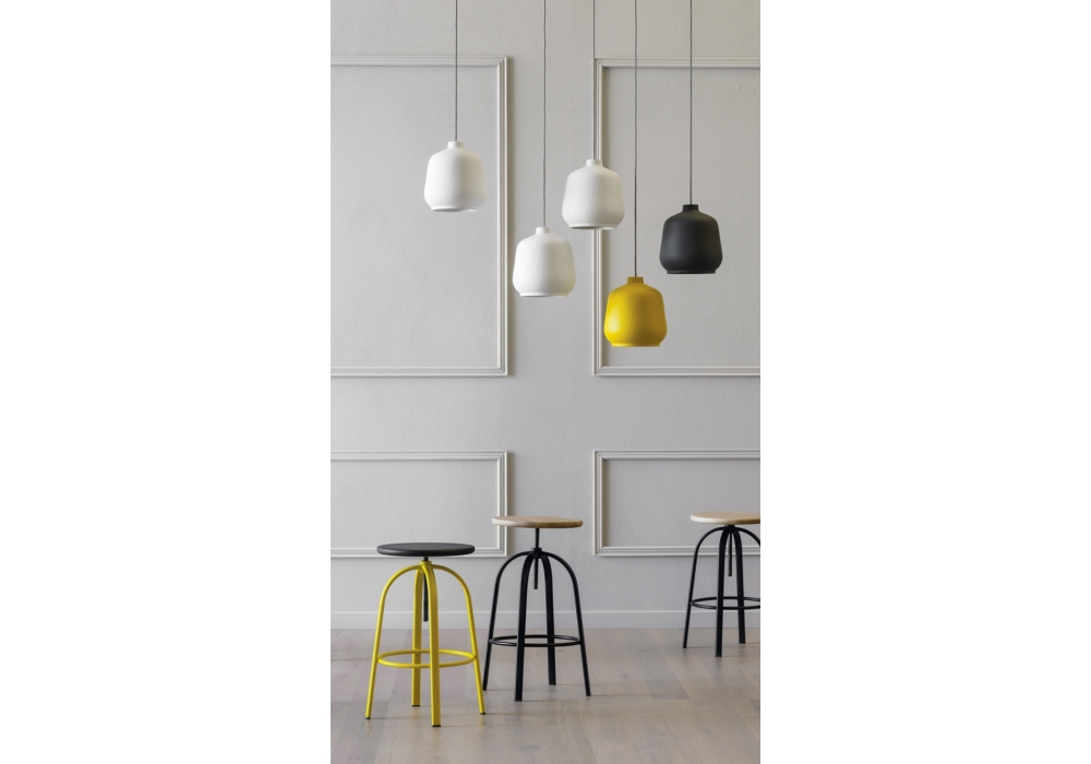 Kiki, diseñada por Paolo Cappello para Miniforms, es una lámpara de suspensión de cerámica, disponible en varios colores.