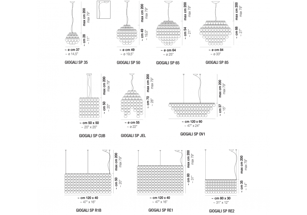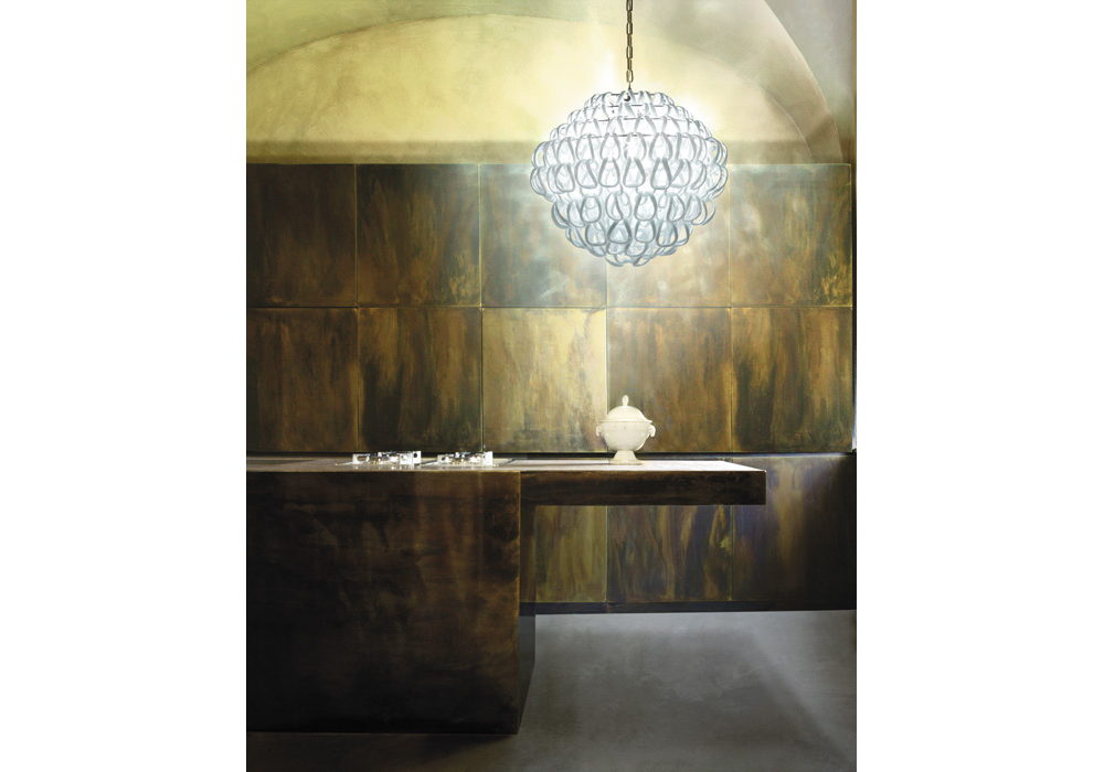 Giogali diseñada por Angelo Mangiarotti para Vistosi es una lámpara de suspensión con estructura portante en metal color bronce mate o cromo pulido. El difusor está estructurado por varios anillos de vidrio en diferentes acabados y adopta una fuente de luz regulable LED o halógena con casquillo E27. Giogali está disponible en diferentes modelos.