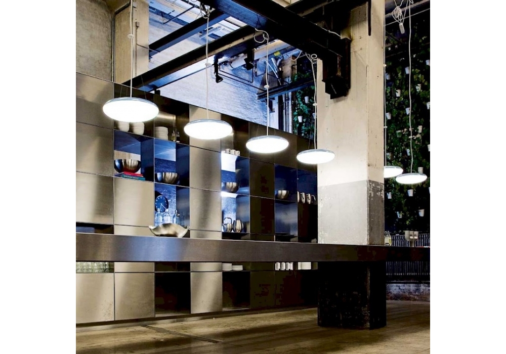 Silverback diseñada por KiBiSi para Louis Poulsen es una lámpara de suspensión con estructura de soporte circular en aluminio fundido a presión con recubrimiento de polvo blanco. El difusor es de PMMA liso y policarbonato semimetálico y protege una fuente de luz LED regulable Dali. Silverback está disponible en diferentes tamaños.