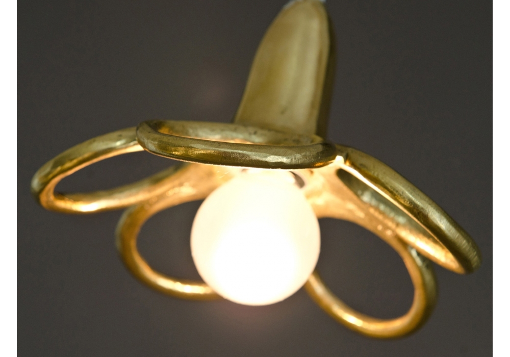 Marguerite, diseñada por Atelier Areti, es una lámpara de suspensión realizada en latón sólido fundido a mano, con un cable revestido de tejido. Bombilla no incluida.