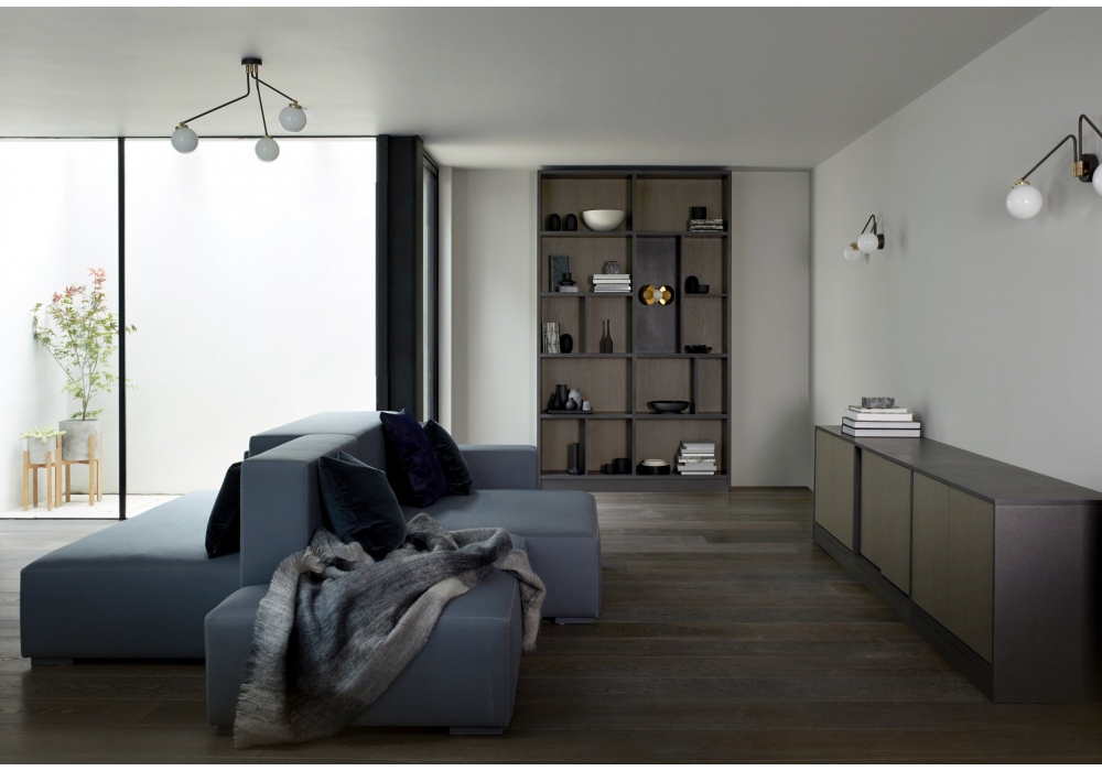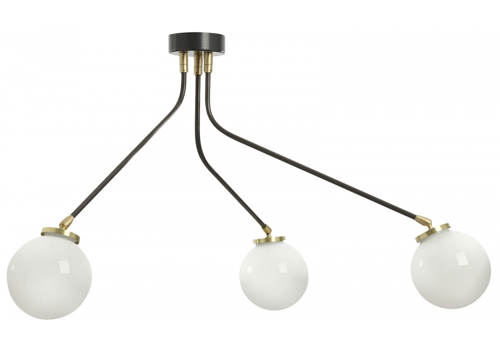 Array Mini Opal diseñada por CTO Lighting es una lámpara de suspensión realizada en bronce con detalles en latón satinado y tulipas de cristal opal.