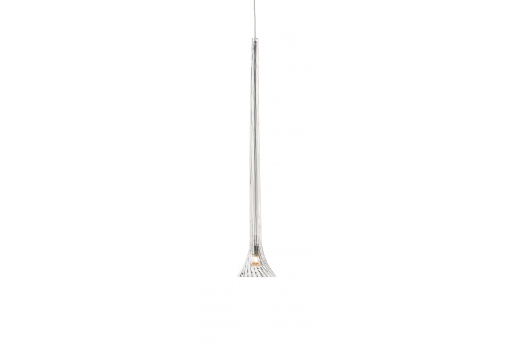Sissi diseñada por Barbara Maggioli para Vistosi es una lámpara de suspensión con partes metálicas y estructura portante cromada. El difusor es de vidrio soplado y protege una fuente de luz regulable LED o halógena GU10. Sissi está disponible en diferentes acabados.