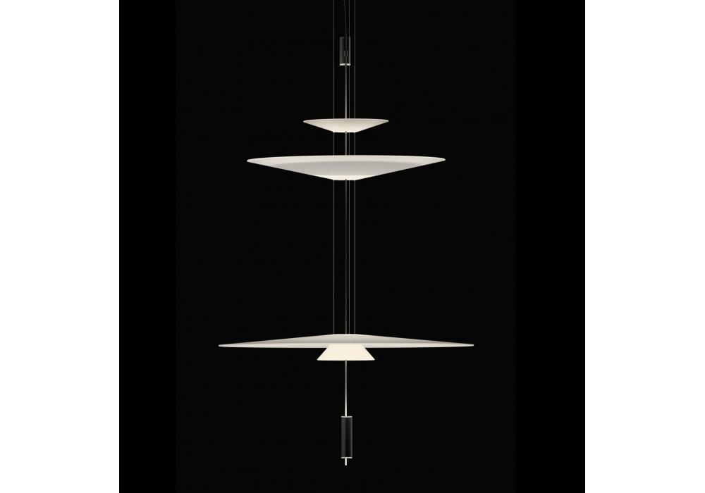Flamingo diseñada por Antoni Arola para Vibia es una lámpara colgante circular con rosetón y varilla vertical en acero pintado. Los discos/difusores están fabricados en metacrilato y acrílico y protegen una o más fuentes de luz LED regulables alojadas en un cuerpo cilíndrico de aluminio. Flamingo está disponible en diferentes modelos, acabados, tonalidades de fuentes de luz y regulables.
