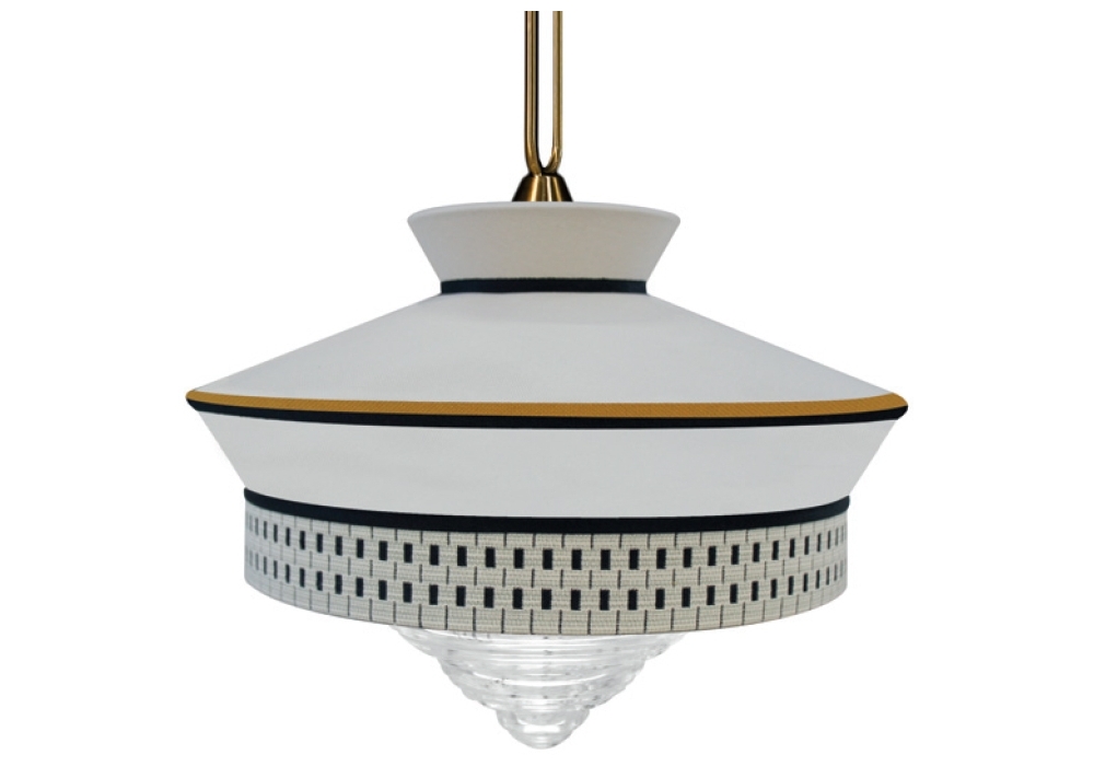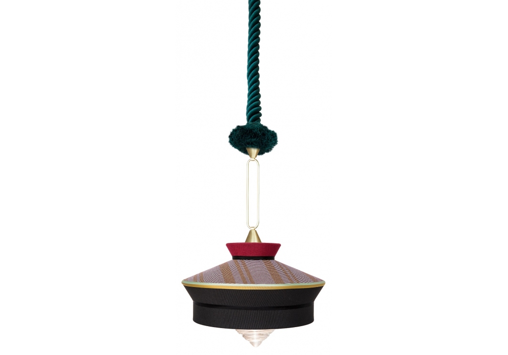 Calypso Martinique diseñada por Servomuto para Contardi es una lámpara de suspensión con estructura portante en latón satinado y cable de suspensión en seda tejida color verde musgo. La pantalla está fabricada en tela y adopta un difusor de cristal transparente. La fuente de luz adoptada es con casquillo tipo LED E27. Calypso Martinique está disponible en diferentes acabados.