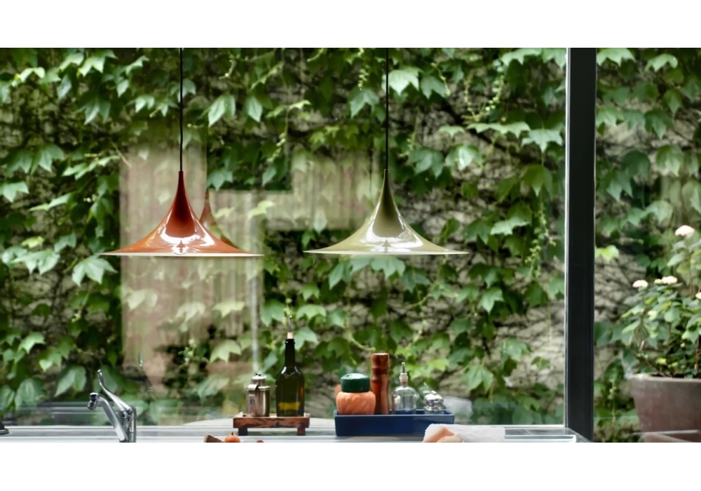 Semi Pendant diseñada por Bonderup & Thorup para Gubi es una lámpara de suspensión con arco de metal esmaltado con una forma basada en dos cuartos de un círculo. El cordón textil es negro, a excepción del acabado blanco que coincide con la pantalla. Rosetón incluido. Bombilla no incluida. Disponible en diferentes acabados y dimensiones.