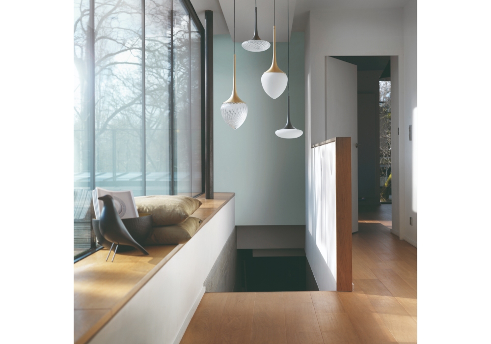Louis diseñada por Émilie Cathelineau para CVL Luminaires es una lámpara de suspensión con un diseño único. Su diseño se caracteriza por la forma de trompeta asociada al difusor de vidrio soplado. Disponible en diferentes acabados y modelos. Bajo pedido, es posible agrupar múltiples suspensiones en un único rosetón rectangular o circular.