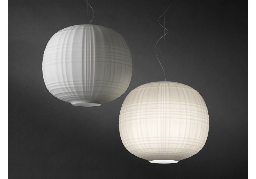 Tartan diseñada por Ludovica & Roberto Palomba para Foscarini es una lámpara de suspensión circular realizada íntegramente en vidrio soplado al ácido con una superficie con decoraciones en relieve. La fuente de luz adoptada es de tipo LED. Tartan está disponible en diferentes versiones.