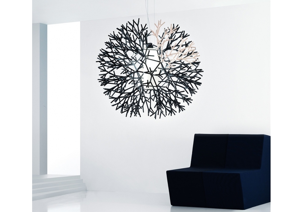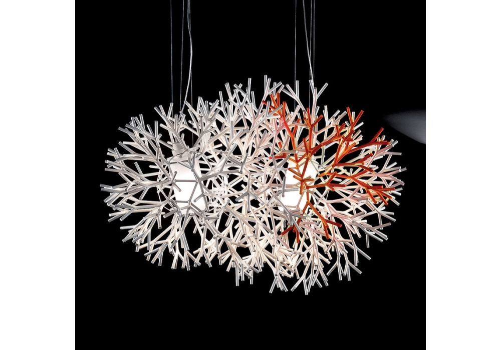 Coral diseñada y producida por Pallucco es una lámpara colgante circular en ABS moldeado. Varios elementos parten del núcleo central, también en ABS, y apantallan una fuente de luz LED, fluorescente o halógena con casquillo E27. Coral está disponible en diferentes acabados.