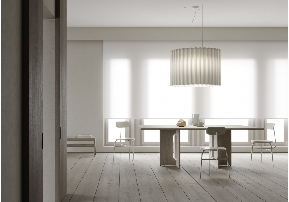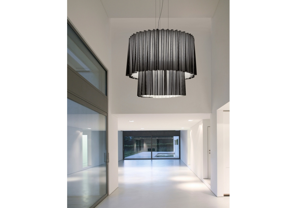 Skirt diseñada por Manuel Vivian para Axo Light es una lámpara de suspensión con pantalla en tejido ignífugo TREVIRA® CS. Disponible en diferentes acabados y medidas.