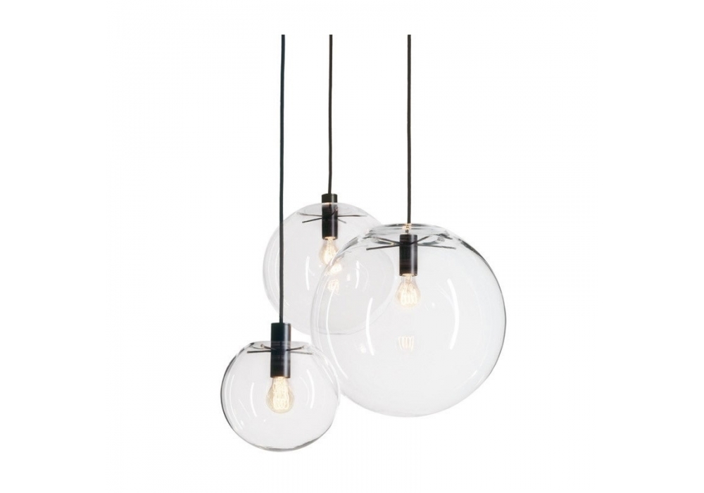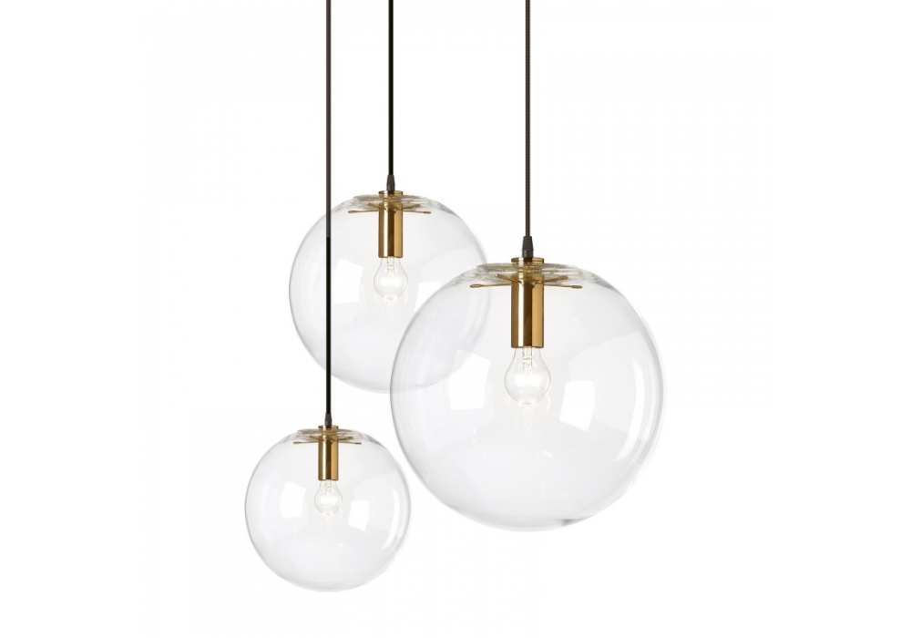 Selene diseñada por Sandra Lindner para ClassiCon es una hermosa lámpara de suspensión con esfera de cristal transparente soplado, suspendida por un cabezal de lámpara de cinco brazos. Placa protectora contra insectos y cabezal de
