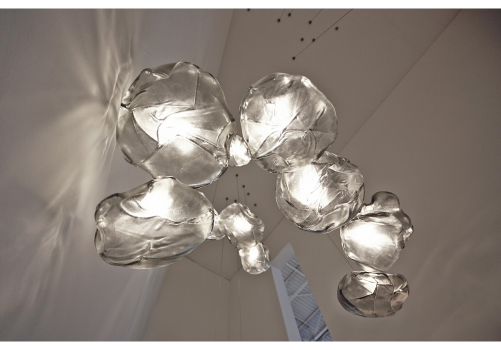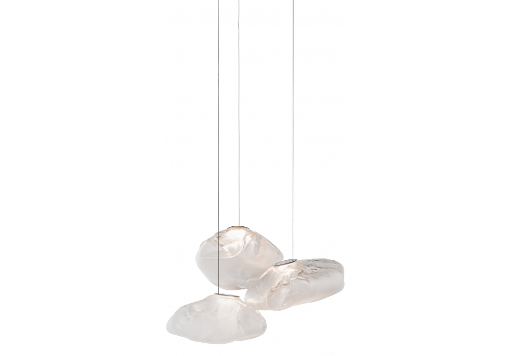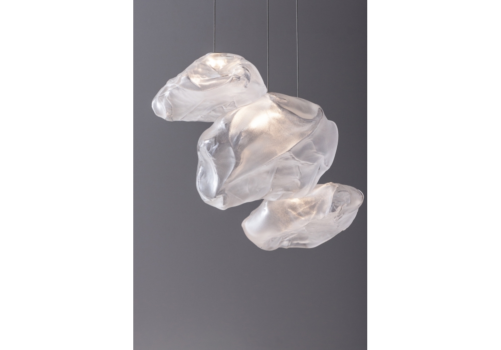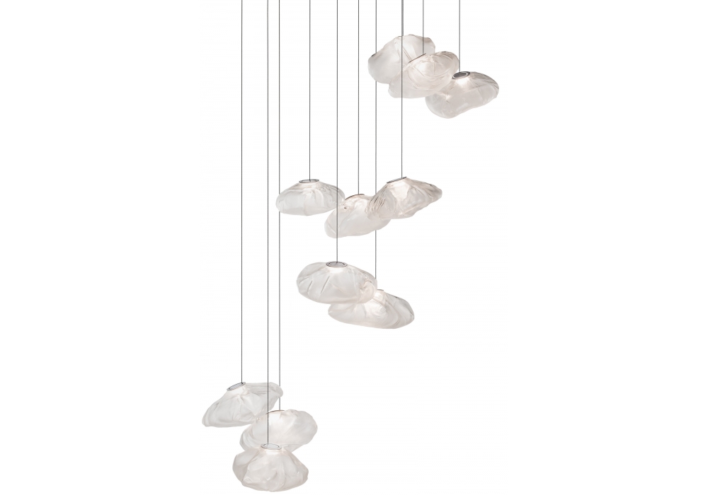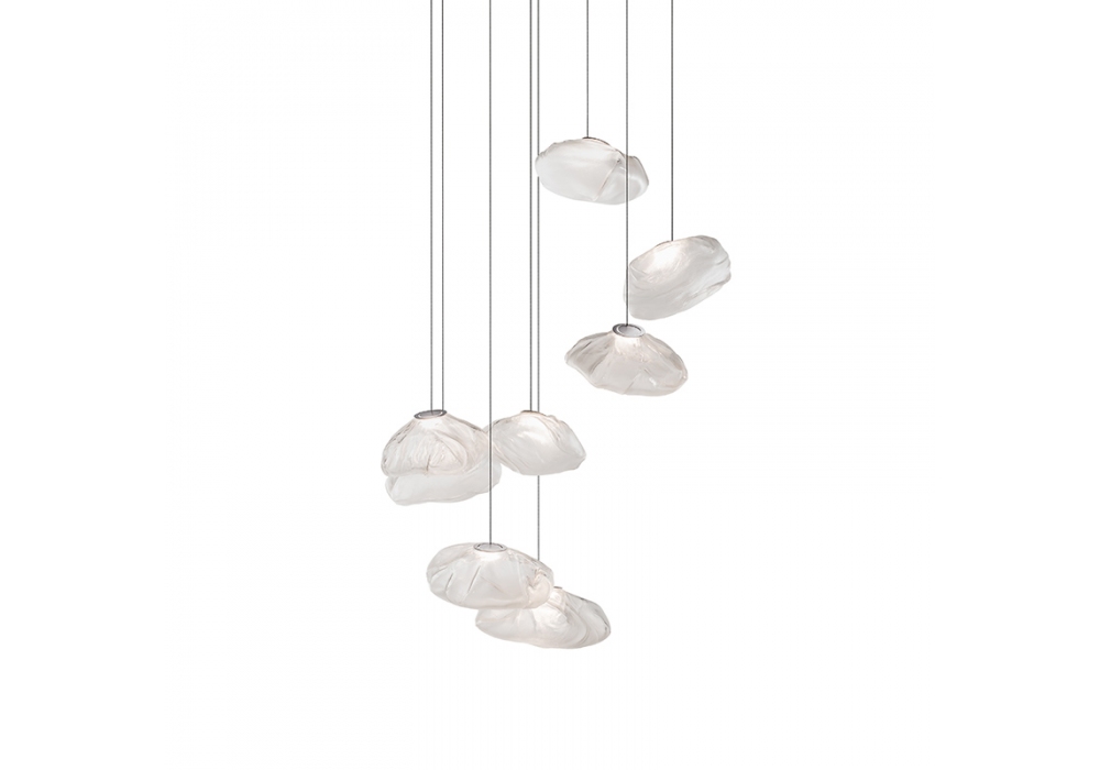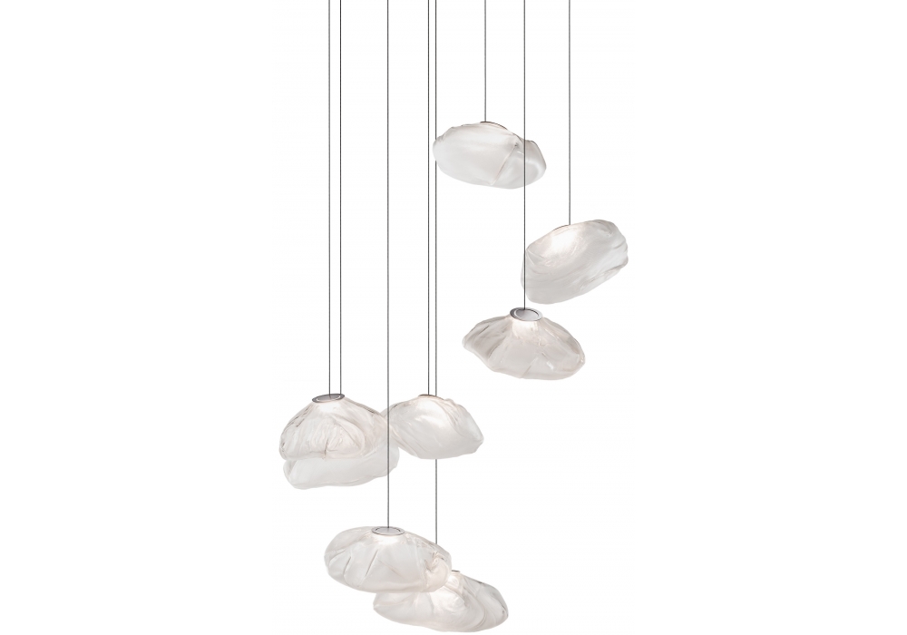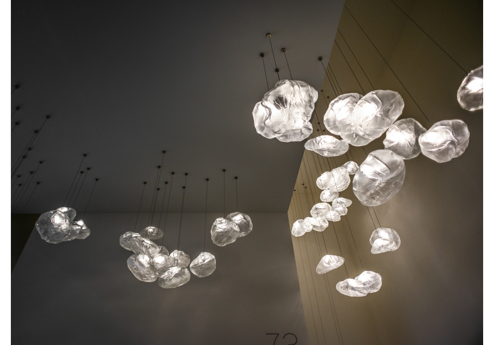 73 es la serie de lámparas de suspensión diseñada por Omer Arbel para Bocci. Se obtiene soplando el vidrio líquido dentro de un jarrón irregular de fibra cerámica resistente a altas temperaturas. La forma que se obtiene de vez en cuando recuerda estructuralmente la textura de una tela que se vuelve definitiva cuando se enfría. Se coloca un LED delgado de tal manera que llene todo el volumen con luz difusa para acentuar la percepción volumétrica de la pieza. En virtud de la fabricación, cada lámpara es única en su especificidad. La serie 73 fue concebida para crear sofisticadas composiciones que recuerdan a las nubes. Disponible en diferentes versiones.