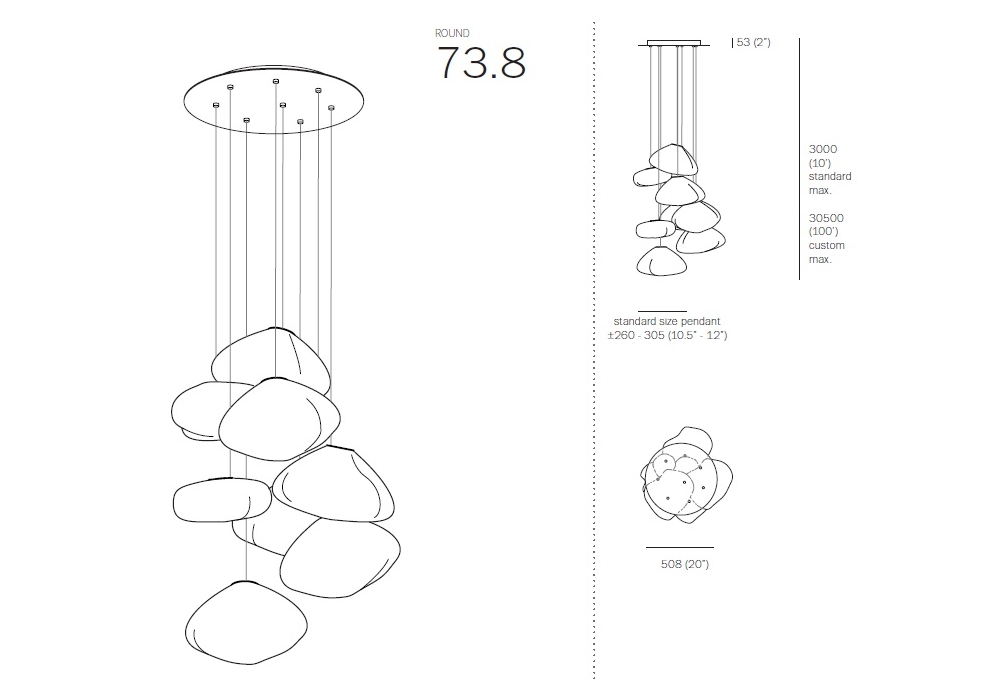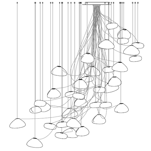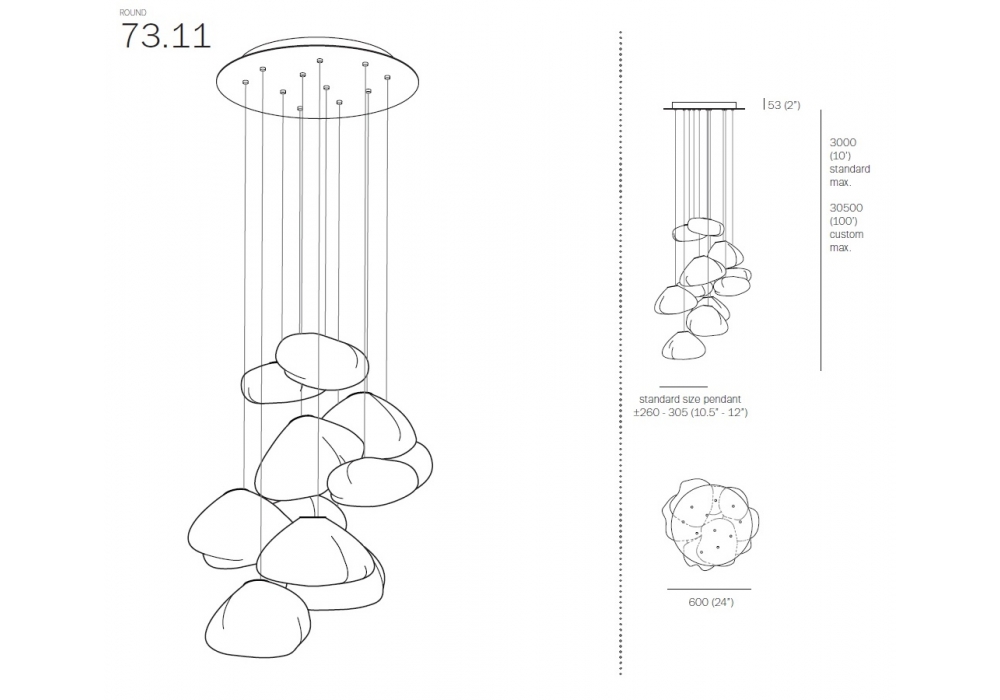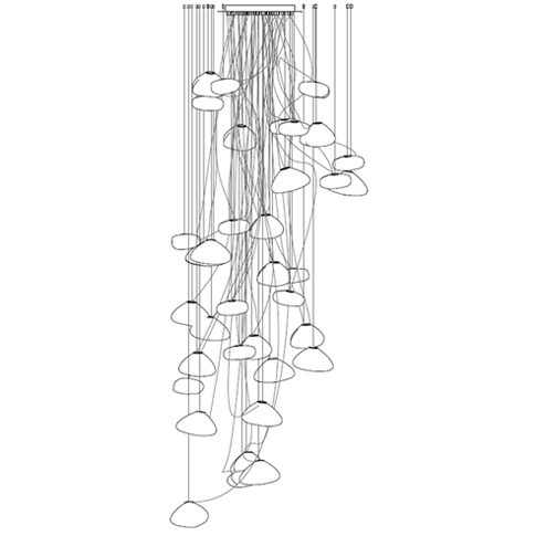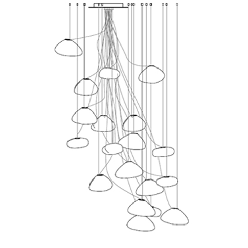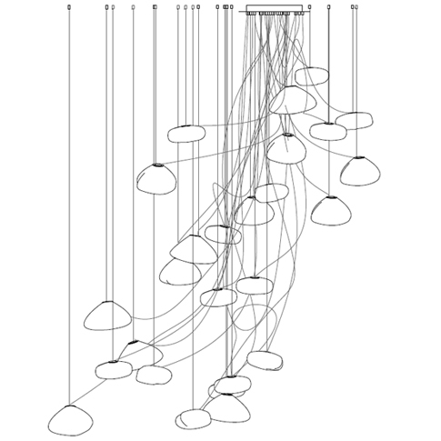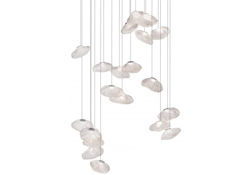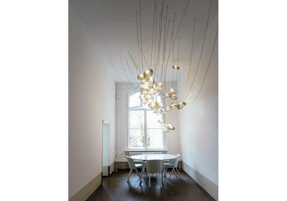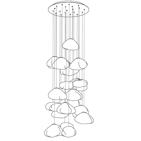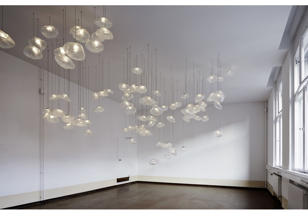 73 es la serie de lámparas de suspensión diseñada por Omer Arbel para Bocci. Se obtiene soplando el vidrio líquido dentro de un jarrón irregular de fibra cerámica resistente a altas temperaturas. La forma que se obtiene de vez en cuando recuerda estructuralmente la textura de una tela que se vuelve definitiva cuando se enfría. Se coloca un LED delgado de tal manera que llene todo el volumen con luz difusa para acentuar la percepción volumétrica de la pieza. En virtud de la fabricación, cada lámpara es única en su especificidad. La serie 73 fue concebida para crear sofisticadas composiciones que recuerdan a las nubes. Disponible en diferentes versiones.