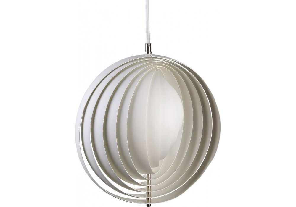 Moon diseñada por Verner Panton para Verpan es una lámpara de suspensión realizada en metal blanco. Caracterizado por lamas verticales dispuestas en abanico, para la regulación individual de la luz. Disponible en diferentes dimensiones.