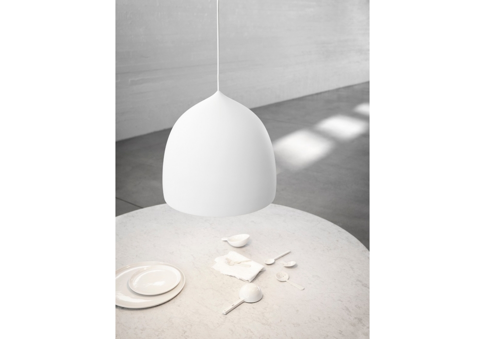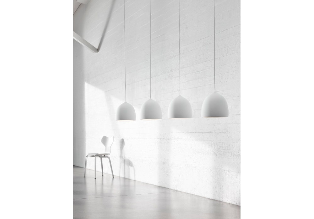 Suspence™ diseñada por GamFratesi para Fritz Hansen es una lámpara de suspensión realizada con pantalla de aluminio lacado mate y cable de PVC a juego. Disponible en diferentes acabados y dimensiones.