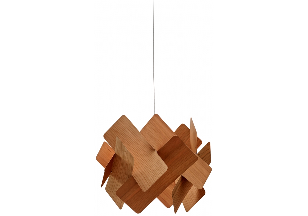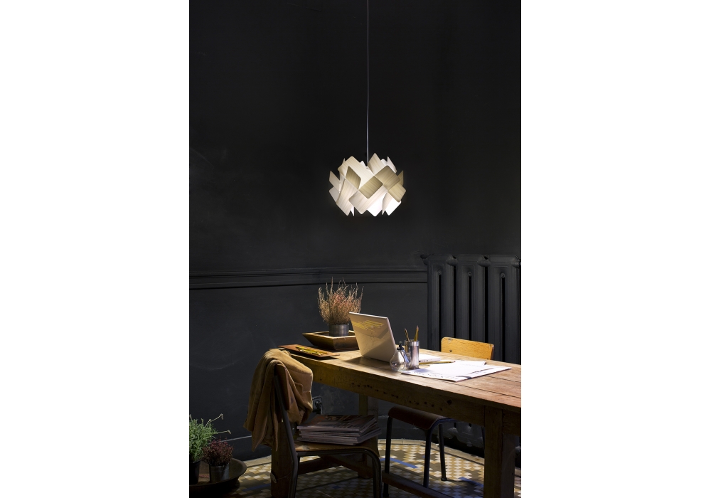 Escape diseñada por Ray Power para LZF es una lámpara de suspensión hecha de madera, con estructura, cable y el rosetón en metal. En esta lámpara las laminas de madera se entrelazan, crea un bello efecto inspirado en las fichas de dominó. Disponible en un amplio abanico de colores. Disponible en diferentes acabados.
