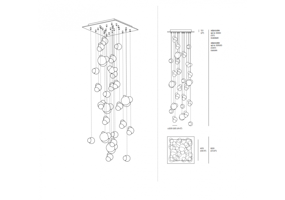 57.26 diseñada por Omer Arbel para Bocci es una lámpara de suspensión con veintiséis difusores. La serie 57 es una colección de lámparas de suspensión en la que cada colgante es el resultado de una innovadora técnica de fabricación que hace que el producto sea único en cuanto a materiales y forma. Consiste en la captura e inyección de aire en el interior de los componentes de vidrio fundido que posteriormente se unen. Una combinación de innovación y artesanía. Disponible en cuatro versiones: Rectangular, Cuadrado, Redondo y Redondo descentralizado con cuatro difusores diferentes.