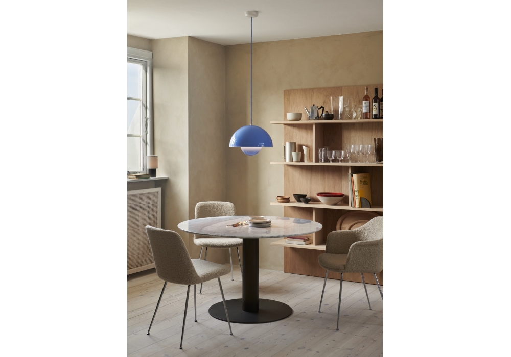 Flowerpot diseñada por Verner Panton para &Tradition es una lámpara de suspensión realizada en acero lacado o chapado y cable textil. Disponible en diferentes acabados.