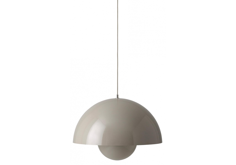 Flowerpot VP2 diseñada por Verner Panton para &Tradition es una lámpara de suspensión en aluminio, con el cable en tejido. Disponible en diferentes acabados.