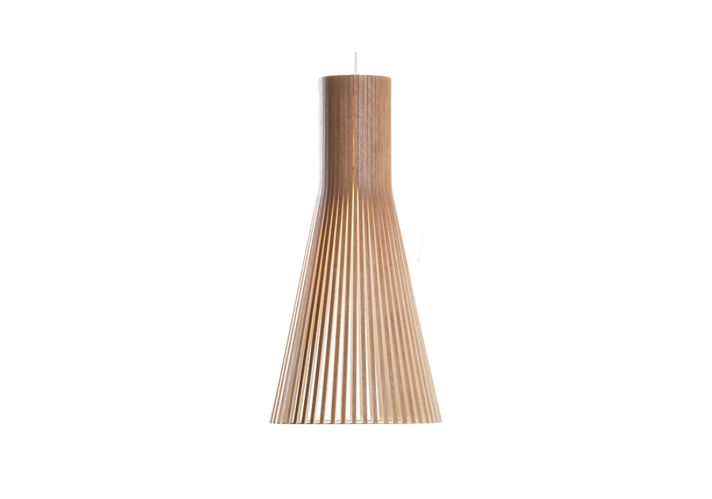 Secto 4200 diseñada por Secto Design es una lampara de suspensiòn. Realizada en madera por artesanos altamente cualificados. La madera proporciona una luminosidad suave para la atmósfera. Disponible en diferentes acabados.