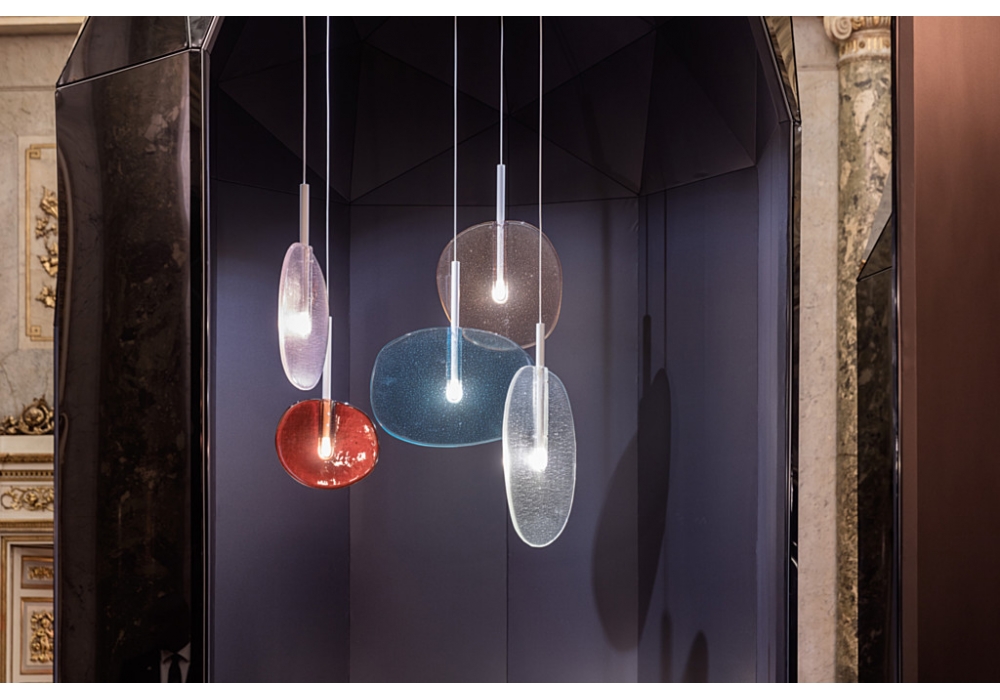 Lollipop diseñado por Boris Klimek para Lasvit es una hermosa lampara de suspension realizado en placas de cristal amorfo, combinado con el sostenedor del metal y la fuente ligera insertada, los objetos resultantes son reminiscencia de piruletas. Disponible en diferentes dimensiones y dimensiones.