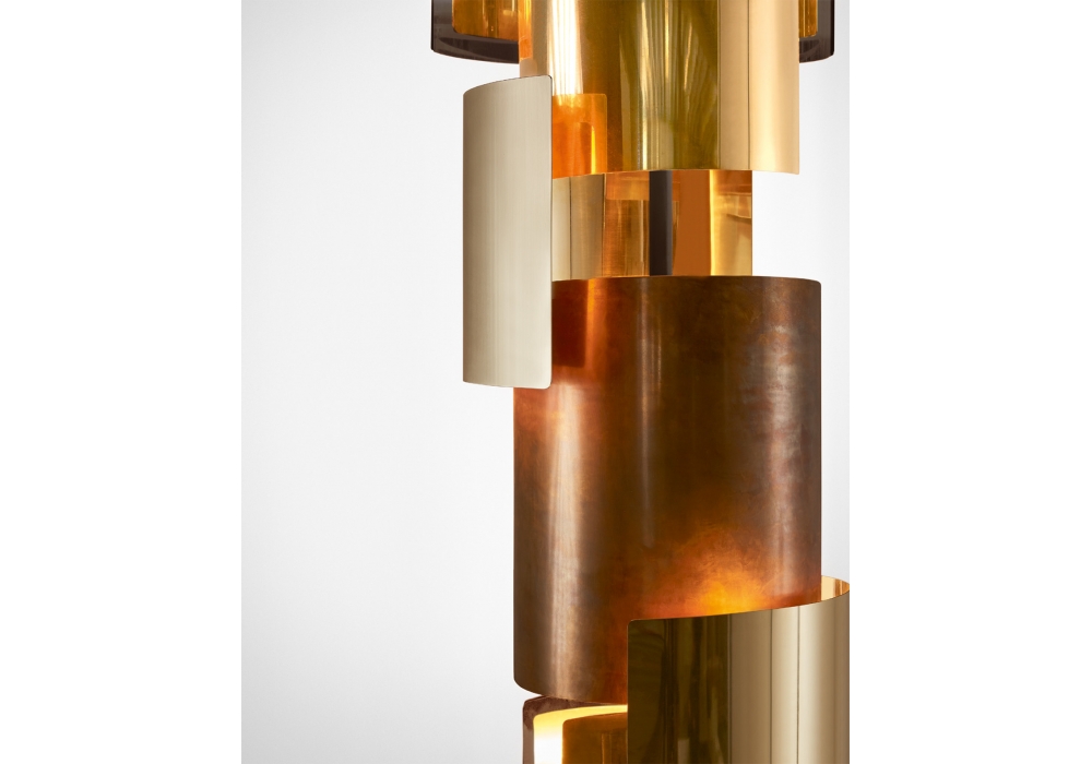 Eris diseñada por Massimo Castagna para Gallotti&Radice es una lámpara de suspensión con luz LED (no regulable) con estructura lacada en negro bronceado y partes metálicas en latón brillante, satinado, pulido a mano y cromado negro.