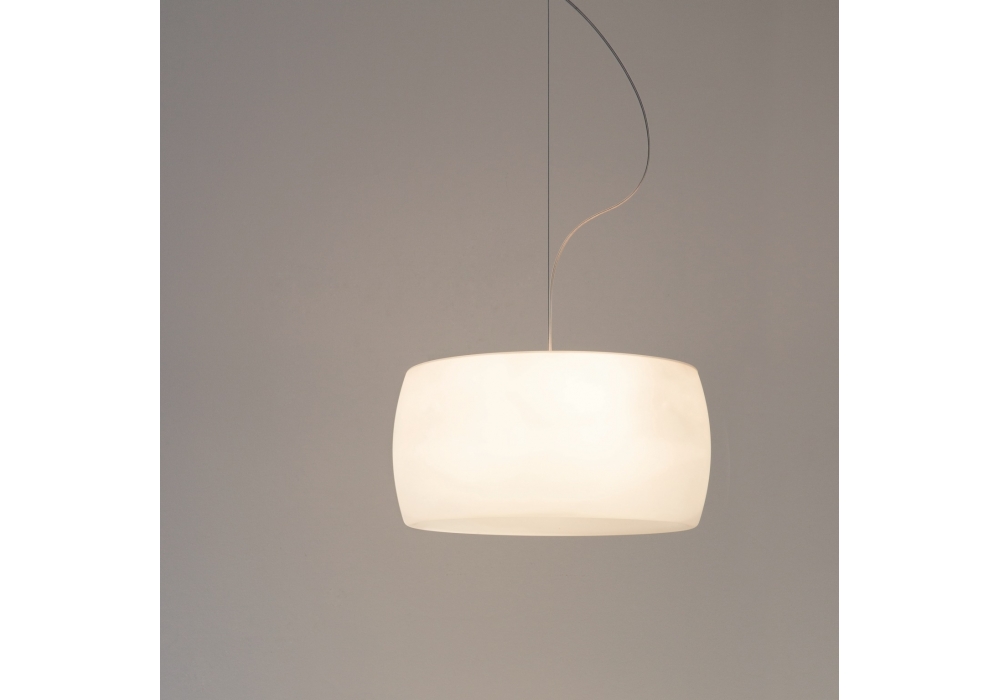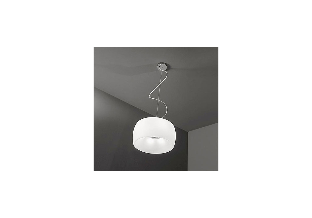 Sirius C. Colombo para Nemo es una lámpara de suspensión circular con estructura de aluminio y difusor de cristal triplex blanco opal. La fuente de luz utilizada es LED o halógena regulable.
