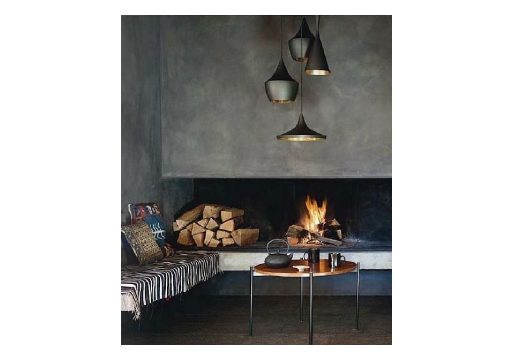 Beat Flat diseñada por Tom Dixon es una lámpara de suspensión realizada en latón disponible en acabado negro. Cable de tela negra.