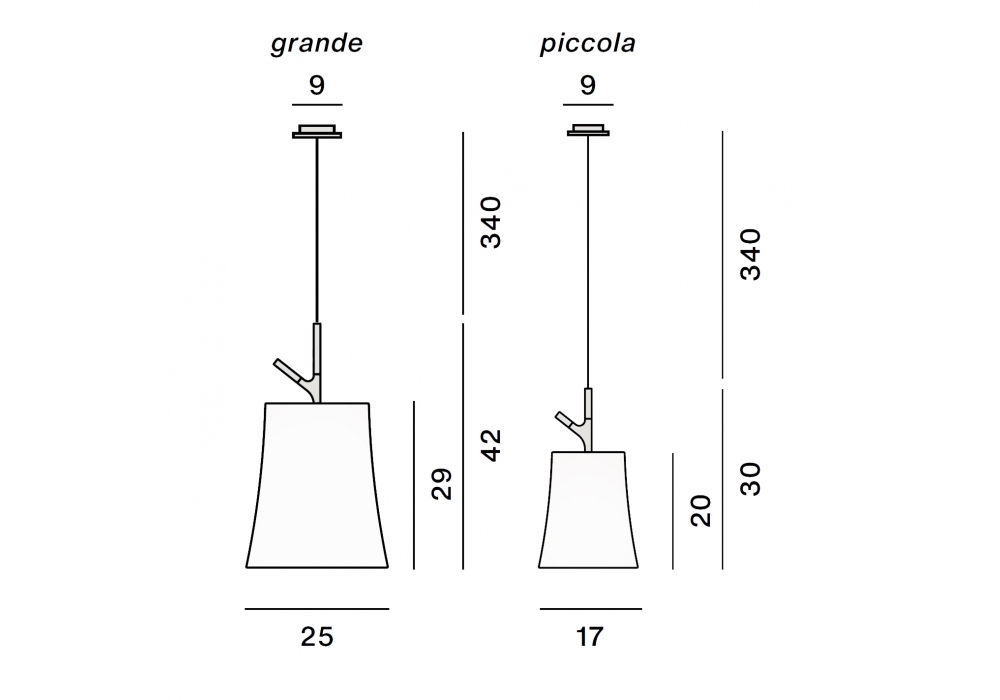 | Dimensiones | Ø 17 x H 30 cm (Small); Ø 25 x H 42 cm (Large). |