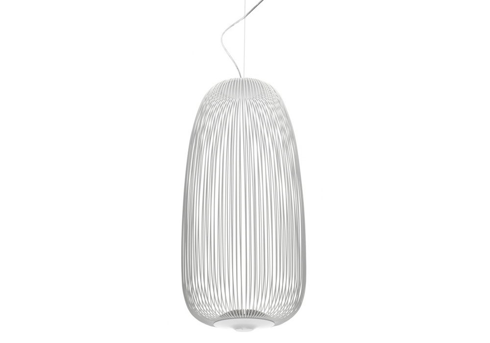 Spokes 1 diseñada por Garcia Cumini para Foscarini es una lámpara de suspensión elipsoidal completamente estructurada por la combinación de acero y aluminio pintado en diferentes acabados. La fuente de luz adoptada es del tipo LED regulable en diferentes versiones.