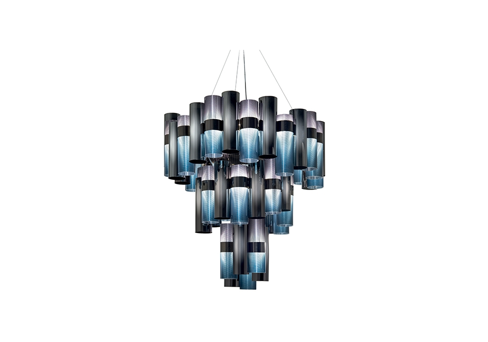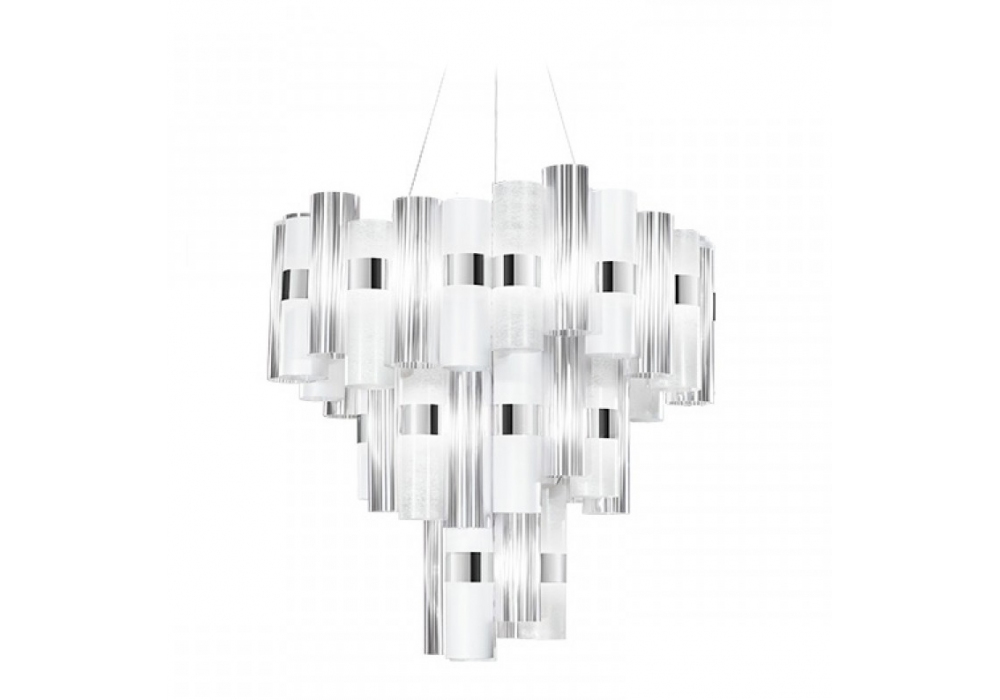 La Lollo XL diseñada por Lorenza Bozzoli para Slamp es una lámpara de suspensión realizada íntegramente en Lentiflex®, Cristalflex®, Opalflex®, Goldflex® cepillado o Pewterflex®. La fuente de luz utilizada es LED regulable. El Lollo XL está disponible en diferentes acabados.