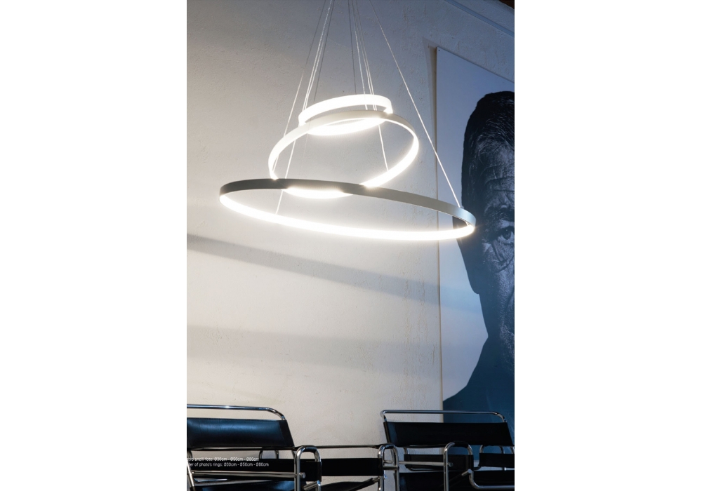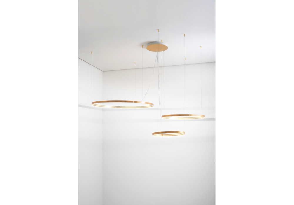 Rings Orizzontale diseñada por Valerio Cometti – V12 Design para Zava es una lámpara de suspensión realizada en aluminio pintado mate o latón. Cada anillo es independiente y es posible crear composiciones de cualquier forma y tamaño. Cilindro para fijación a techo, cromado para la versión pintada y a juego para la latón. Disponible en diferentes medidas y acabados.