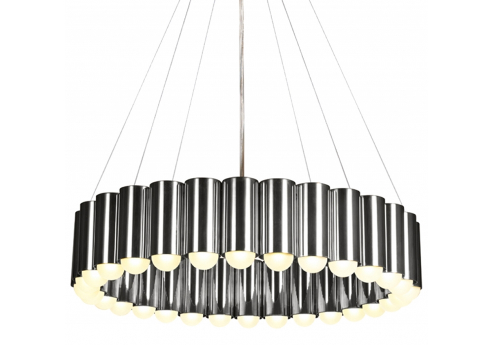 Carousel diseñada y producida por Lee Broom es una lámpara de suspensión circular compuesta por múltiples elementos cilíndricos de acero. La fuente de luz adoptada es del tipo LED regulable. Carrusel está disponible en diferentes acabados.
