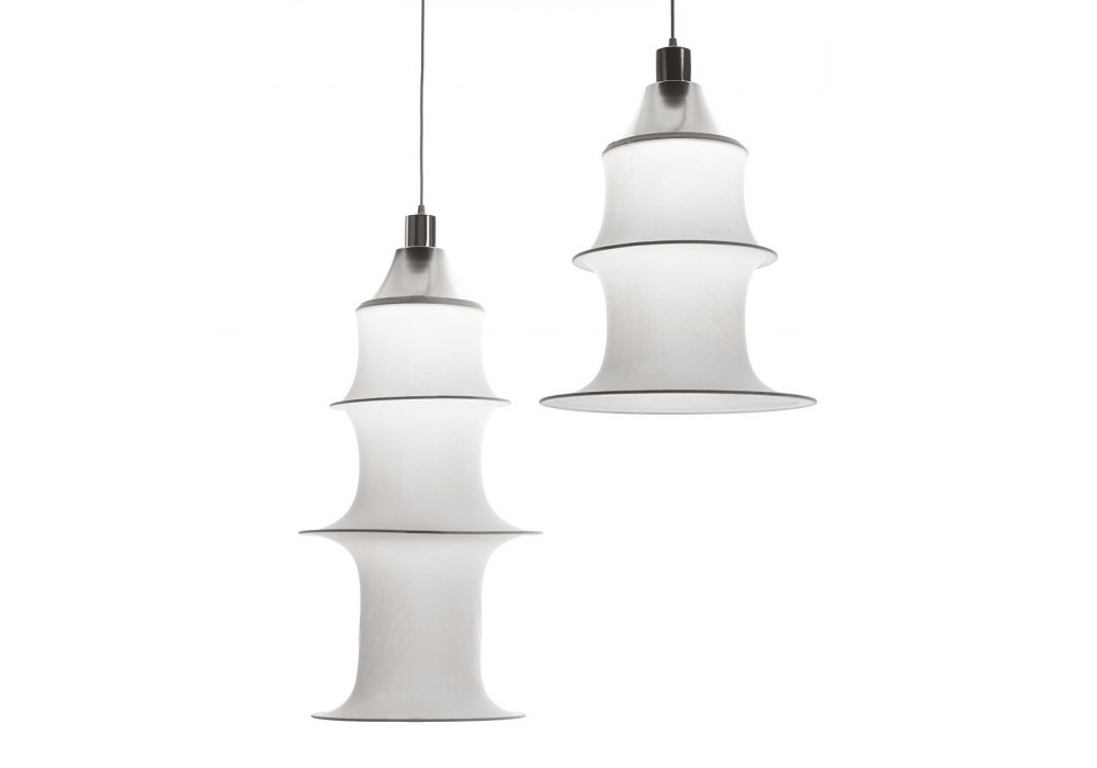 Falkland diseñada por Bruno Munari para Artemide es una lámpara de suspensión con estructura de aluminio natural y difusor de malla elástica tubular blanca sostenido por círculos metálicos concéntricos. La fuente de luz adoptada es LED con sistema regulable. Falkland está disponible en diferentes modelos y accesorios.