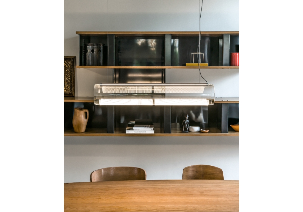 Guise diseñada por Stefan Diez para Vibia es una colección de lámparas de suspensión con perfil de aluminio y difusor de vidrio borosilicato. Regulable mediante sensor óptico excepto modelo 2271. Lacado grafito mate.