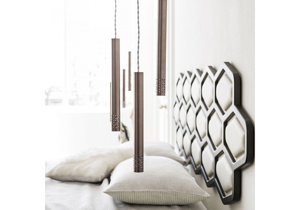 Stilo diseñada por Studio Kronos para Cattelan Italia es una lámpara de suspensión en acero cromado negro o bronce satinado. Disponible en tres modelos diferentes. Bombilla LED incluida.
