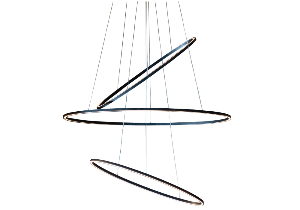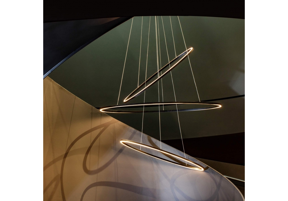 Ellisse Triple diseñada por Federico Palazzari para Nemo es una lámpara de suspensión elipsoidal con elementos concéntricos en aluminio extruido pintado. El difusor es de metacrilato opaco y apantalla una fuente de luz LED regulable en diferentes tonalidades de luz. Ellisse Triple está disponible en diferentes acabados.