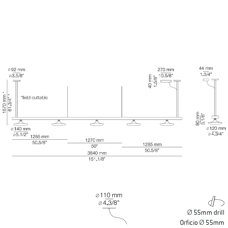 | Distribución lumínica | 3000 K°Ang. 45°CRI 90 24V Lumen 3288; 3000 K°Ang. 45°CRI 90 24V Lumen 4384; 3000 K°Ang. 45°CRI 90 24V Lumen 5480. |