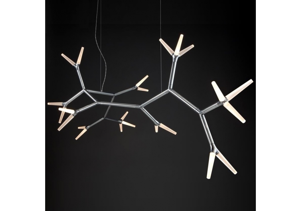 Sparks conçue par Daniel Becker pour Quasar est une lampe à suspension modulaire avec une structure ramifiée en aluminium avec des modules rotatifs à 360° en différentes finitions. Les sources lumineuses sont des LED. Sparks est disponible en différents modèles et sur demande en version dimmable.