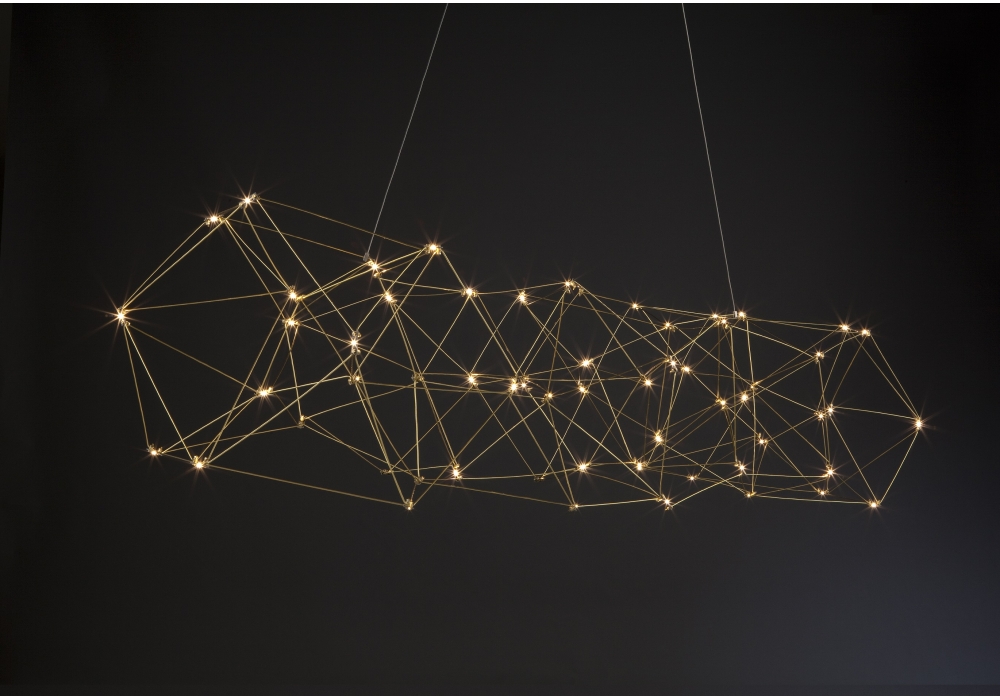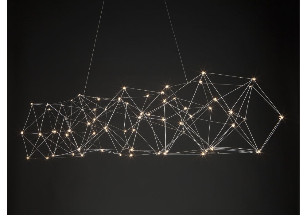 Cosmos diseñada por Jan Pauwels para Quasar es una lámpara de suspensión con rosetón negro y cuerpo de lámpara cuadrangular desestructurado compuesto por una serie de varillas tubulares ancladas entre sí. Las fuentes de luz fijadas a la estructura portante son del tipo LED. Cosmos está disponible en diferentes modelos, acabados y en versión estándar o downlight LED.